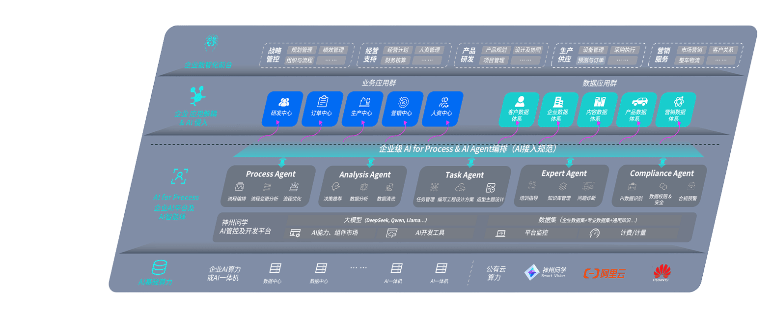端到端的一站式AI工作空间深度融合了从企业战略规划到日常经营的全流程业务板块,,,,定向解决车企内部领域多、、、部门多、、、、链条长、、、场景碎片化等难题,,,,支持车企快速构建以AI为核心的生产力写作体系,,,,实现任务执行与AI能力的无缝集成与交互
