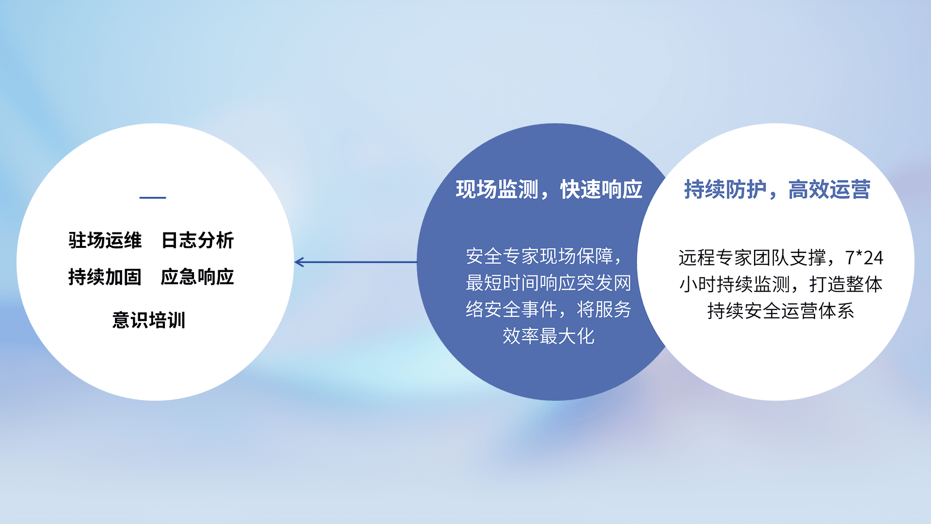 针对客户行业特性,,,提供专属的一站式安全管理服务,,,,帮助客户全面感知网络空间威胁,,通过安全专家的线上、、、、线下防护支持,,,,实现风险闭环,,,将安全保障常态化,,,为客户打造常态化安全运维运营服务。。。